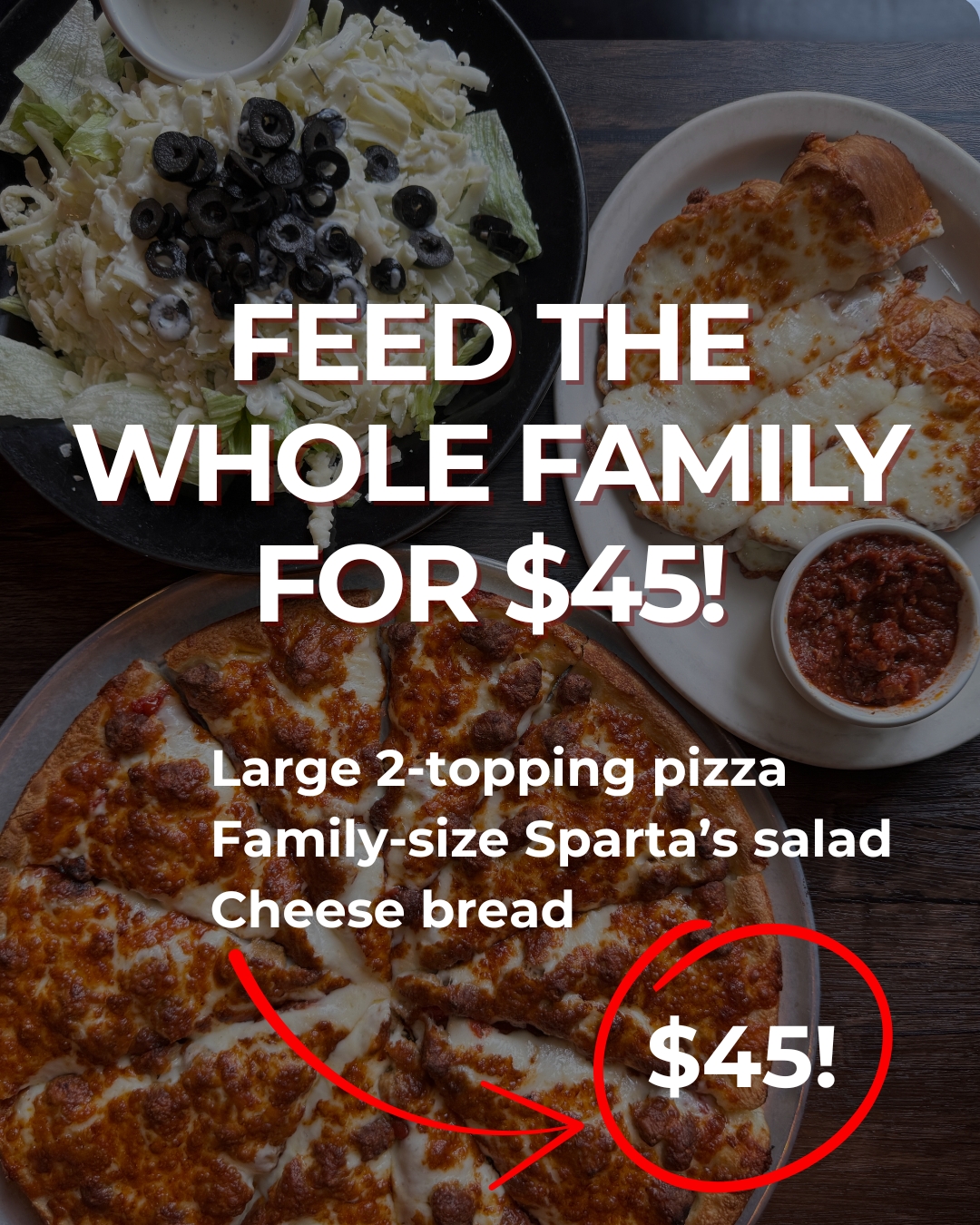 Host your next group gathering or event at Sparta’s and let us make it truly memorable! Whether you’re planning a team celebration or a family get-together, our restaurants offer versatile spaces to accommodate parties of all sizes. Enjoy our affordable group menus featuring delicious Italian comfort food that caters to every taste.